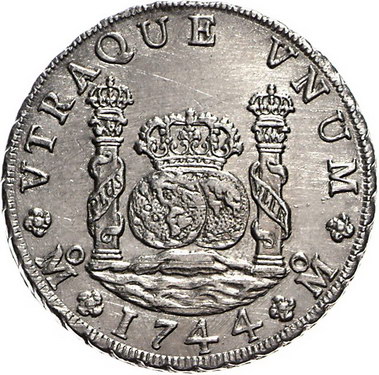 Los-Nummer: Auktion 51 - 3430 Ausländische Münzen und Medaillen Mexiko Felipe V. 1700-1746, 8 Reales 1744 F, Mexiko. Zwei Globen unter Krone zwischen den Säulen des Herkules / Gekröntes Wappen. Calicó/Trigo 707. Vorzüglich Schätzpreis: 400,- Zuschlag: unverkauft |