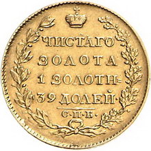 Los-Nummer: Auktion 51 - 3768 Ausländische Münzen und Medaillen Russland Alexander I. 1801-1825, 5 Rubel 1824, St. Petersburg. Münzmeister Paul Stupitzin. Harris 244, Friedberg 150 , Bitkin 23. GOLD. Sehr schön Schätzpreis: 2000,- Zuschlag: unverkauft |