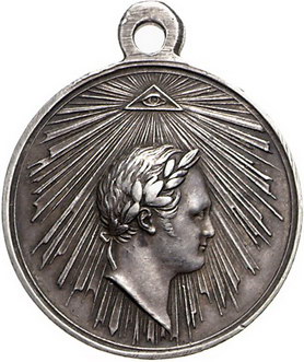 Los-Nummer: Auktion 51 - 3775 Ausländische Münzen und Medaillen Russland Alexander I. 1801-1825, Militärverdienstmedaille 1814. Auf die Einnahme von Paris. Unter strahlendem Dreieck Kopf des Zaren nach rechts / Schrift in Kranz. Diakov 375.1, Smirnov 393 a. 28,5 mm, 11,78 g. Originalöse. Fast vorzüglich Schätzpreis: 1000,- Zuschlag: 1075,- |