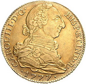 Los-Nummer: Auktion 51 - 4020 Ausländische Münzen und Medaillen Spanien Carlos III. 1759-1788, 4 Escudos 1777 PJ, Madrid. Calicó/Trigo 213, Friedberg 284. GOLD. Sehr schön - vorzüglich Schätzpreis: 600,- Zuschlag: 480,- |