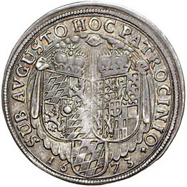 Los-Nummer: Auktion 51 - 102 Altdeutsche Münzen und Medaillen Bayern Ferdinand Maria 1651-1679, Medaille 1673. Auf die Geburt der Prinzessin Violenta Beatrix. Säule mit Reichsapfel / Die Wappen von Bayern und Savoyen auf Fürstenmantel, unten Rautenschild der Stände. Wittelsbach 1369 , Hauser 41. 27,5 mm, 6,18 g. Schöne Patina. Sehr schön + Schätzpreis: 250,- Zuschlag: unverkauft |