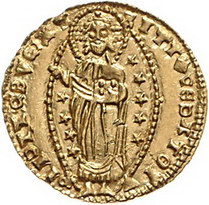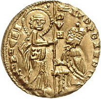 Los-Nummer: Auktion 51 - 17 Kreuzfahrer Achaea Giovanni di Gravina 1347-1368, Ducato, Chiarenza. AZBRDANDVO DVX SMVENETI Doge kniet vor St. Markus / Christus in Madoria. Gamberini vergl. 344, Schlumberger 38 a var, Friedberg Tf. 12/34. GOLD. Prachtexemplar. Fast Stempelglanz Schätzpreis: 500,- Zuschlag: 520,- |