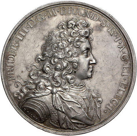 Los-Nummer: Auktion 51 - 388 Altdeutsche Münzen und Medaillen Brandenburg-Preußen Friedrich III. 1688-1701, Medaille 1688, von Faltz. Auf das Bündnis mit Wilhelm von Oranien. Brustbild nach rechts / Stehende Juno, links Adler. Variante ohne Löwenkopfschulter mit glattem Harnisch. Brockmann 314 , Menadier 195 var., Weiler (Bonn) 4, Weiler (Köln) 1258, v. Loon -. 48 mm, 62,50 g. Vorzüglich + Schätzpreis: 2000,- Zuschlag: unverkauft |