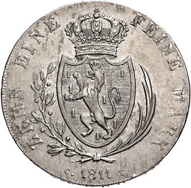 Los-Nummer: Auktion 51 - 1247 Altdeutsche Münzen und Medaillen Nassau Friedrich Wilhelm 1788-1816, Taler 1811. Jaeger 26, Thun 222, AKS 32, Isenbeck 85, Kahnt 303. Sehr schön - vorzüglich Schätzpreis: 400,- Zuschlag: unverkauft |