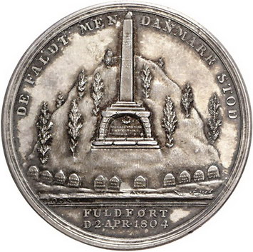 Los-Nummer: Auktion 51 - 2960 Ausländische Münzen und Medaillen Dänemark Christian VII. 1766-1808, Medaille 1804, von Loos und Döll. Auf das Denkmal für die in der Seeschlacht von Kopenhagen gefallenen Offiziere. Hügel mit Obelisk / Schrift mit dänischer Flagge in Kranz. Bergsoe 40, Sommer A 116, Slg. Julius 1215, Bramsen 2185. 37 mm, 13,65 g. Schöne Patina. Vorzüglich - Stempelglanz Schätzpreis: 175,- Zuschlag: unverkauft |