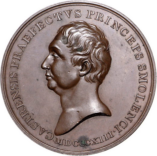Los-Nummer: Auktion 51 - 3771 Ausländische Münzen und Medaillen Russland Alexander I. 1801-1825, Bronzemedaille 1813, von Halliday. Auf den Tod des Feldmarschalls Kutusov, Fürst von Smolensk. Büste nach links / Schrift in Kranz. Diakov 373.1 (R2), Slg. Julius 2623, Bramsen 1227. 55 mm. Äußerst selten. Winz. Fleck, vorzüglich - Stempelglanz Schätzpreis: 900,- Zuschlag: unverkauft |