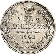 Los-Nummer: Auktion 51 - 3818 Ausländische Münzen und Medaillen Russland Alexander II. 1855-1881, 20 Kopeken 1861, Paris oder Straßburg. Ohne Münzzeichen. Harris 395, Bitkin 289 (R3). Sehr schön Schätzpreis: 100,- Zuschlag: 120,- |
