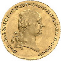 Los-Nummer: Auktion 51 - 114 Altdeutsche Münzen und Medaillen Bayern Maximilian IV. Joseph 1799-1805, Dukat 1800. AKS 1, Divo/Schramm 13, Friedberg 262. #0Verwechselungsgefahr} GOLD. Winz. Schrötlingsfehler, fast Stempelglanz Schätzpreis: 2250,- Zuschlag: unverkauft |