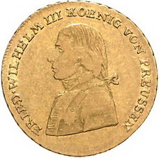 Los-Nummer: Auktion 51 - 516 Altdeutsche Münzen und Medaillen Brandenburg-Preußen Friedrich Wilhelm III. 1797-1840, Friedrichs d'or 1798 A. 'Friedenstyp'. Jaeger 101 , Friedberg 2425. #0Verwechselungsgefahr Fr. 2422} GOLD. Fast sehr schön Schätzpreis: 750,- Zuschlag: unverkauft |