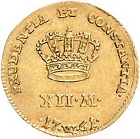 Los-Nummer: Auktion 51 - 2956 Ausländische Münzen und Medaillen Dänemark Frederik V. 1746-1766, 12 Mark 1761 W. Hede 22 C, Friedberg 269. GOLD. Sehr schön Schätzpreis: 200,- Zuschlag: 380,- |