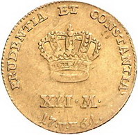 Los-Nummer: Auktion 51 - 2957 Ausländische Münzen und Medaillen Dänemark Frederik V. 1746-1766, 12 Mark 1761 VH. Hede 22 D, Friedberg 269. GOLD. Sehr schön - vorzüglich Schätzpreis: 200,- Zuschlag: unverkauft |
