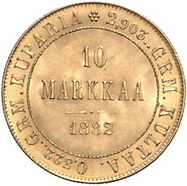 Los-Nummer: Auktion 51 - 2973 Ausländische Münzen und Medaillen Finnland Alexander III. von Russland 1881-1894, 10 Markkaa 1882. K.M. 8, Friedberg 5. GOLD. Vorzüglich Schätzpreis: 250,- Zuschlag: unverkauft |