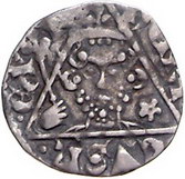 Los-Nummer: Auktion 51 - 3159 Ausländische Münzen und Medaillen Irland Henry III. 1216-1254, Penny, Dublin. 1,25 g. Gekrönter Kopf in Dreieck / Zwillingsfadenkreuz, in den Winkeln je drei Kugeln. Seaby 6235. Fast sehr schön Schätzpreis: 100,- Zuschlag: 130,- |