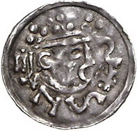 Los-Nummer: Auktion 51 - 2226 Haus Habsburg Salzburg, Erzbistum Heinrich II. 1002-1009-1024, Pfennig. 1,20 g. Zweite Prägeperiode 1009-1024. Gekrönter Kopf nach rechts / Kreuz, in den Winkeln Beizeichen drei Kugeln, Ringel, drei Kugeln und Kugel, verballhornte Umschriften. Hahn 94 E 1 var. Sehr schön + Schätzpreis: 750,- Zuschlag: 600,- |