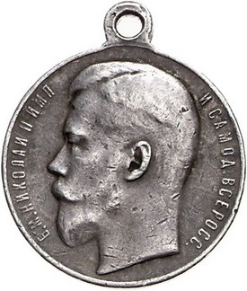 Los-Nummer: Auktion 51 - 3892 Ausländische Münzen und Medaillen Russland Nikolaus II. 1894-1917, Tragbare Verdienstmedaille vierter Klasse o.J. Für Tapferkeit. Kopf des Zaren nach links / Drei Zeilen Schrift. Diakov 1133. 28 mm, 15,21 g. Sehr schön Schätzpreis: 100,- Zuschlag: 80,- |