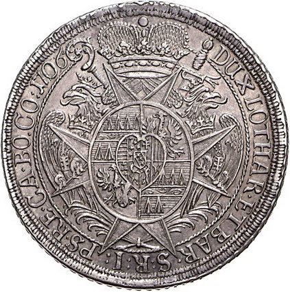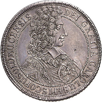 Los-Nummer: Auktion 51 - 4046 Ausländische Münzen und Medaillen Tschechien-Olmütz Karl von Lothringen 1695-1711, Taler 1706. Suchomel/Videman 576, L.-M. 358, Davenport 1211. Winz. Schrötlingsfehler, sehr schön - vorzüglich Schätzpreis: 200,- Zuschlag: 280,- |