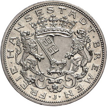 Los-Nummer: Auktion 51 - 2604 Münzen des Deutschen Kaiserreichs Bremen 2 Mark 1904 J. 5 Mark 1906 J. Jaeger 59, 60. 2 Stück. Vorzüglich Schätzpreis: 250,- Zuschlag: unverkauft |