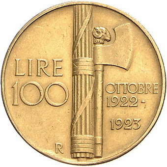 Los-Nummer: Auktion 51 - 3166 Ausländische Münzen und Medaillen Italien-Königreich Vittorio Emanuele III. 1900-1946, 100 Lire 1923. K.M. 65, Friedberg 30, Pagani 644. GOLD. Randfehler, sehr schön - vorzüglich Schätzpreis: 1500,- Zuschlag: 1550,- |