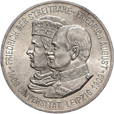 Los-Nummer: Auktion 51 - 2688 Münzen des Deutschen Kaiserreichs Sachsen Friedrich August III. 1904-1918, 2 und 5 Mark 1909. Universität Leipzig. Jaeger 138, 139. 2 Stück. Vorzüglich Schätzpreis: 150,- Zuschlag: unverkauft |