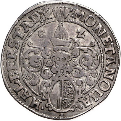 Los-Nummer: Auktion 51 - 855 Altdeutsche Münzen und Medaillen Halberstadt, Domkapitel Taler 1629. Rechter Teil des Wappens mit Ranken. Besser/Brämer/Bürger 45.56 var, Davenport 5348, Zepernick 131. Fast sehr schön Schätzpreis: 250,- Zuschlag: 280,- |