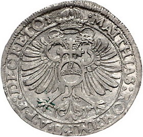 Los-Nummer: Auktion 51 - 946 Altdeutsche Münzen und Medaillen Isenburg-Büdingen Wolfgang Ernst 1596-1633, 24 Kreuzer 1618, Büdingen. Münzzeichen Stern. Wappen mit glatten Flächen / Gekrönter Doppeladler mit Reichsapfel auf der Brust. Zilch WE 6-7. Vorzüglich Schätzpreis: 750,- Zuschlag: unverkauft |