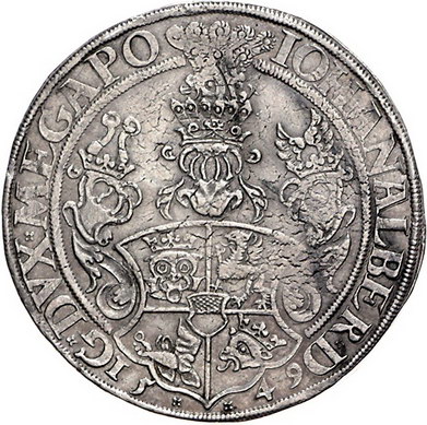 Los-Nummer: Auktion 51 - 1072 Altdeutsche Münzen und Medaillen Mecklenburg Johann Albrecht I. 1547-1576, Taler 1549, Gadebusch. Brustbild nach links / Dreifach behelmtes Wappen. Kunzel 97 var, Davenport 9547. Sehr schön Schätzpreis: 300,- Zuschlag: 390,- |