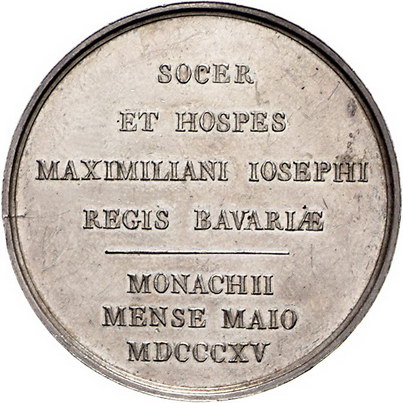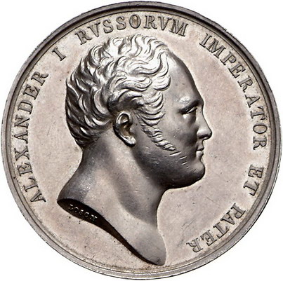 Los-Nummer: Auktion 51 - 3778 Ausländische Münzen und Medaillen Russland Alexander I. 1801-1825, Medaille 1815, von Losch. Auf den Besuch des Zaren in München. Büste nach rechts / Sieben Zeilen Schrift. Diakov 395.1 (R2) , Smirnow -, Wittelsbach 2502, Hauser 487. 42 mm, 29,14 g. Winz. Randfehler, winz. Kratzer, vorzüglich - Stempelglanz Schätzpreis: 1250,- Zuschlag: 1000,- |