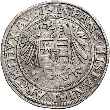 Los-Nummer: Auktion 51 - 1969 Haus Habsburg Haus Habsburg Ferdinand I. 1521-1564, Taler 1551, Joachimsthal. Schulten 3865, Davenport 8046, Voglhuber 49/7, Dietiker 148. Sehr schön Schätzpreis: 400,- Zuschlag: 490,- |