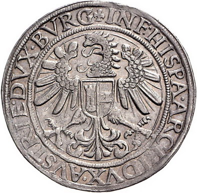 Los-Nummer: Auktion 51 - 1978 Haus Habsburg Haus Habsburg Ferdinand I. 1521-1564, Taler o.J., Hall. Ohne Münzzeichen. Schulten 4517, Davenport 8026, Voglhuber 48/1. Sehr schön - vorzüglich Schätzpreis: 250,- Zuschlag: 300,- |