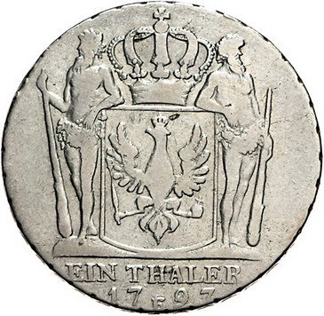 Los-Nummer: Auktion 51 - 482 Altdeutsche Münzen und Medaillen Brandenburg-Preußen Friedrich Wilhelm II. 1786-1797, Taler 1797 E, Königsberg. Jaeger 25, Davenport 2599 , Slg. Jacquet 2769. Sehr seltener Jahrgang. Graffiti, fast sehr schön Schätzpreis: 250,- Zuschlag: 360,- |