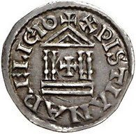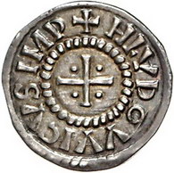 Los-Nummer: Auktion 51 - 26 Karolinger Ludwig der Fromme 814-840, Pfennig, unbekannte Münzstätte. 1,75 g. XPISTIANARELIGIO Kirche / HLVDOVICVSIMP Kreuz. Morrison-Grunthal 472. Schöne Patina. Vorzüglich Schätzpreis: 200,- Zuschlag: 270,- |