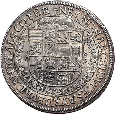 Los-Nummer: Auktion 51 - 2011 Haus Habsburg Haus Habsburg Rudolf II. 1576-1612, Taler o.J. (1604/05), Ensisheim. Brustbild mit Mühlsteinkragen nach rechts / Gekröntes vielfeldiges Wappen. Moser/Tursky 586 var, Voglhuber 95/1 var, Davenport 3032. Schöne Patina. Vorzüglich + Schätzpreis: 600,- Zuschlag: unverkauft |