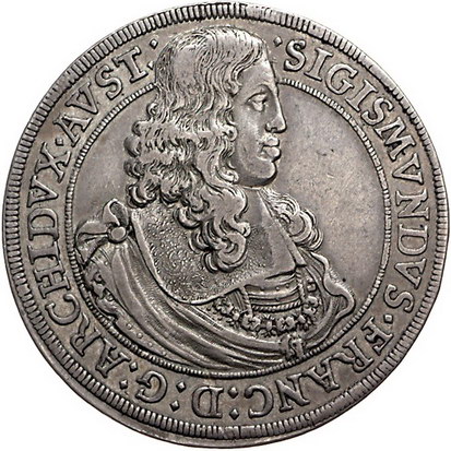 Los-Nummer: Auktion 51 - 2066 Haus Habsburg Haus Habsburg Erzherzog Sigismund Franz 1663-1665, Taler 1665, Hall. Drapiertes und geharnischtes Brustbild nach rechts / Erzherzogshut über vierfeldigem Wappen mit Tiroler Mittelschild. Voglhuber 186/2, Moser/Tursky 531, Davenport 3370. Sehr schön + Schätzpreis: 400,- Zuschlag: 400,- |