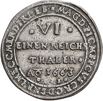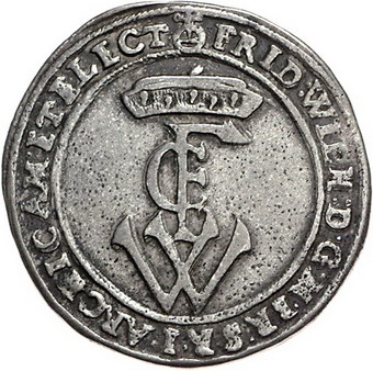 Los-Nummer: Auktion 51 - 345 Altdeutsche Münzen und Medaillen Brandenburg-Preußen Friedrich Wilhelm 1640-1688, 1/6 Taler 1663 AB, Berlin. Interimsfuß. v. Schrötter 246. Sehr schön Schätzpreis: 400,- Zuschlag: 440,- |