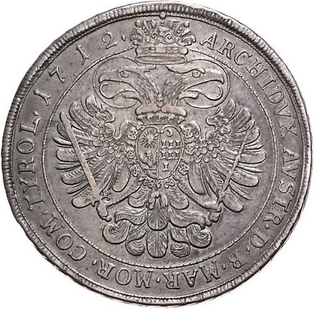 Los-Nummer: Auktion 51 - 2158 Haus Habsburg Haus Habsburg Karl VI. 1711-1740, Taler 1712, Siebenbürgen. Geharnischtes und belorbeertes Brustbild mit Allongeperücke nach rechts / Gekrönter Doppeladler mit Schwert und Zepter, auf der Brust herzförmiges siebenbürgisches Wappen mit Ordenskette. Herinek 460, Davenport 1100 , Resch 3. Sehr selten. Sehr schön Schätzpreis: 2750,- Zuschlag: 3400,- |