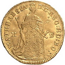 Los-Nummer: Auktion 51 - 2170 Haus Habsburg Haus Habsburg Maria Theresia 1740-1780, Dukat 1742 KB, Kremnitz. Herinek 236, Friedberg 180. GOLD. Minimal gewellt, sehr schön Schätzpreis: 300,- Zuschlag: 310,- |