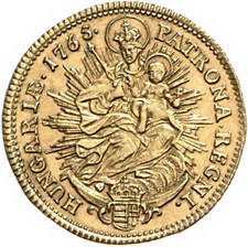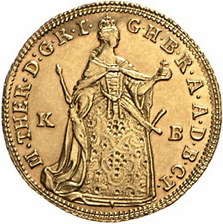 Los-Nummer: Auktion 51 - 2172 Haus Habsburg Haus Habsburg Maria Theresia 1740-1780, Dukat 1765 KB, Kremnitz. Herinek 258, Friedberg 180. GOLD. Leicht berieben, sehr schön - vorzüglich Schätzpreis: 300,- Zuschlag: 360,- |