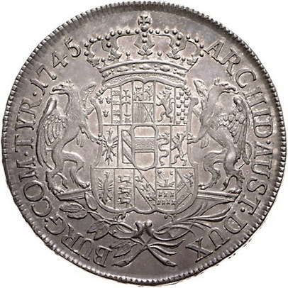Los-Nummer: Auktion 51 - 2174 Haus Habsburg Haus Habsburg Maria Theresia 1740-1780, Taler 1745, Wien. Jugendliches dekolletiertes Brustbild nach rechts / Von zwei Greifen gehaltenes gekröntes Wappen. Herinek 394, Davenport 1110. Selten. Prachtexemplar. Fast Stempelglanz Schätzpreis: 1000,- Zuschlag: 1650,- |
