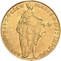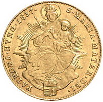 Los-Nummer: Auktion 51 - 2207 Haus Habsburg Haus Habsburg Ferdinand I. 1835-1848, Dukat 1837 ohne Münzzeichen, Kremnitz. Für Ungarn. Herinek 64, Jaeger/Jaeckel 253, Friedberg 222, Huszár 2075. GOLD. Selten. Sehr schön / vorzüglich Schätzpreis: 500,- Zuschlag: 420,- |