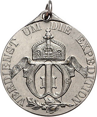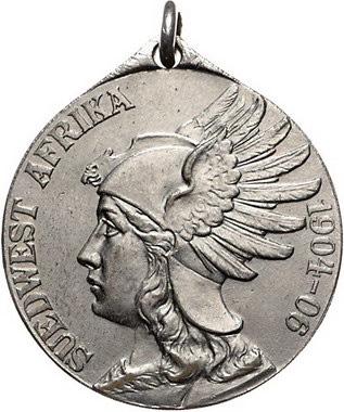 Los-Nummer: Auktion 51 - 2486 Medaillen Kolonien Südwestafrika-Denkmünze#0Medaille# 1904/06 für Nichtkämpfer, von Schultz. Kopf der Germania nach links / Gekröntes Monogramm. Slg. Grönegreß 1284 , H.-Schreiber 403, Klenau 3111. Stahl. Schwarz-weiß-rotes Band lose beigefügt. 32,5 mm. Vorzüglich Schätzpreis: 75,- Zuschlag: 60,- |