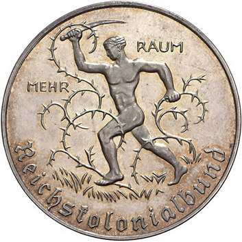 Los-Nummer: Auktion 51 - 2502 Medaillen Kolonien Medaille o.J. (1933) des Reichskolonialbundes, von Morin. Auf die 50-Jahrfeier der Erwerbung deutscher Kolonien. Mann mit Buschmesser in Dornengestrüpp / Weltkugel. Slg. Grönegreß 1249. Auf dem Rand: WUERTT.MUENZAMT SILBER 900 FEIN. 36 mm, 24,64 g. Minimal berieben, Polierte Platte Schätzpreis: 100,- Zuschlag: 130,- |