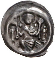 Los-Nummer: Auktion 51 - 678 Altdeutsche Münzen und Medaillen Bremen, Erzbistum Hartwig II. von Uthlede 1184-1208, Brakteat. 0,58 g. St. Petrus auf einem Bogen sitzend, in der Rechten Schlüssel, links Lilienzepter, flankiert von zwei Türmen. Jungk -, Berger -, Slg. Bonhoff 11 , Slg. Danziger 13, Buchenau Tf. 177,10. Prägeschwäche, sehr schön Schätzpreis: 350,- Zuschlag: unverkauft |