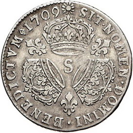 Los-Nummer: Auktion 51 - 2985 Ausländische Münzen und Medaillen Frankreich Ludwig XIV. 1643-1715, 1/4 Ecu aux 3 couronnes 1709, Reims. Gadoury 165. Schön / sehr schön Schätzpreis: 75,- Zuschlag: 100,- |