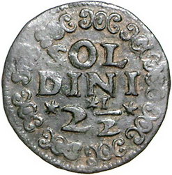 Los-Nummer: Auktion 51 - 3066 Ausländische Münzen und Medaillen Griechenland-Kreta Leonardo Dona 1606-1612, Cu 2 1/2 Soldini o.J., Candia (Heraklion). Gamberini 2065. Dunkle Patina. Fast sehr schön Schätzpreis: 50,- Zuschlag: unverkauft |