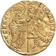 Los-Nummer: Auktion 51 - 3261 Ausländische Münzen und Medaillen Italien-Venedig Bartolomeo Gradenigo 1339-1342, Ducato. 3,50 g. BA GRADONICO DVX. Gamberini 79, Friedberg 1220, Paolucci S. 28, 1. GOLD. Knickspur, schön Schätzpreis: 100,- Zuschlag: 250,- |