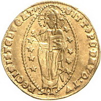 Los-Nummer: Auktion 51 - 3263 Ausländische Münzen und Medaillen Italien-Venedig Andrea Dandolo 1343-1354, Ducato. 3,48 g. Gamberini 84, Friedberg 1221, Paolucci S. 29, 1. GOLD. Leicht gewellt, sehr schön Schätzpreis: 150,- Zuschlag: 200,- |