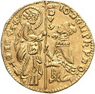 Los-Nummer: Auktion 51 - 3268 Ausländische Münzen und Medaillen Italien-Venedig Giovanni Dolfin 1356-1361, Ducato. 3,52 g. IO DELPhVNO DVX. Gamberini 103, Friedberg 1224, Paolucci S. 32, 1. GOLD. Sehr schön - vorzüglich Schätzpreis: 250,- Zuschlag: 370,- |