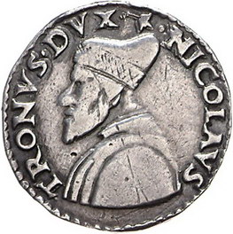 Los-Nummer: Auktion 51 - 3281 Ausländische Münzen und Medaillen Italien-Venedig Nicolo Tron 1471-1473, Trono oder Lira da 20 Soldi. Gamberini 189, Paolucci S. 45, 2 var. Winz. Henkelspur, leicht bearbeitet, sehr schön Schätzpreis: 90,- Zuschlag: 220,- |