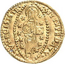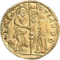 Los-Nummer: Auktion 51 - 3292 Ausländische Münzen und Medaillen Italien-Venedig Pietro Lando 1539-1545, Ducato. 3,49 g. PET.LANDO DVX. Gamberini 309, Friedberg 1248, Paolucci S. 60, 1. GOLD. Sehr schön - vorzüglich Schätzpreis: 225,- Zuschlag: 300,- |