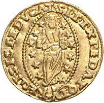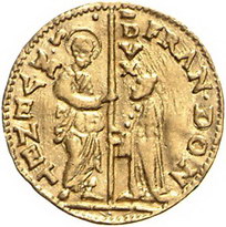 Los-Nummer: Auktion 51 - 3295 Ausländische Münzen und Medaillen Italien-Venedig Francesco Donà 1545-1553, Ducato oder Zecchino. 3,48 g. FRAN.DON DVX. Gamberini 338, Friedberg 1250, Paolucci S. 61, 1. GOLD. Sehr schön - vorzüglich Schätzpreis: 250,- Zuschlag: 350,- |